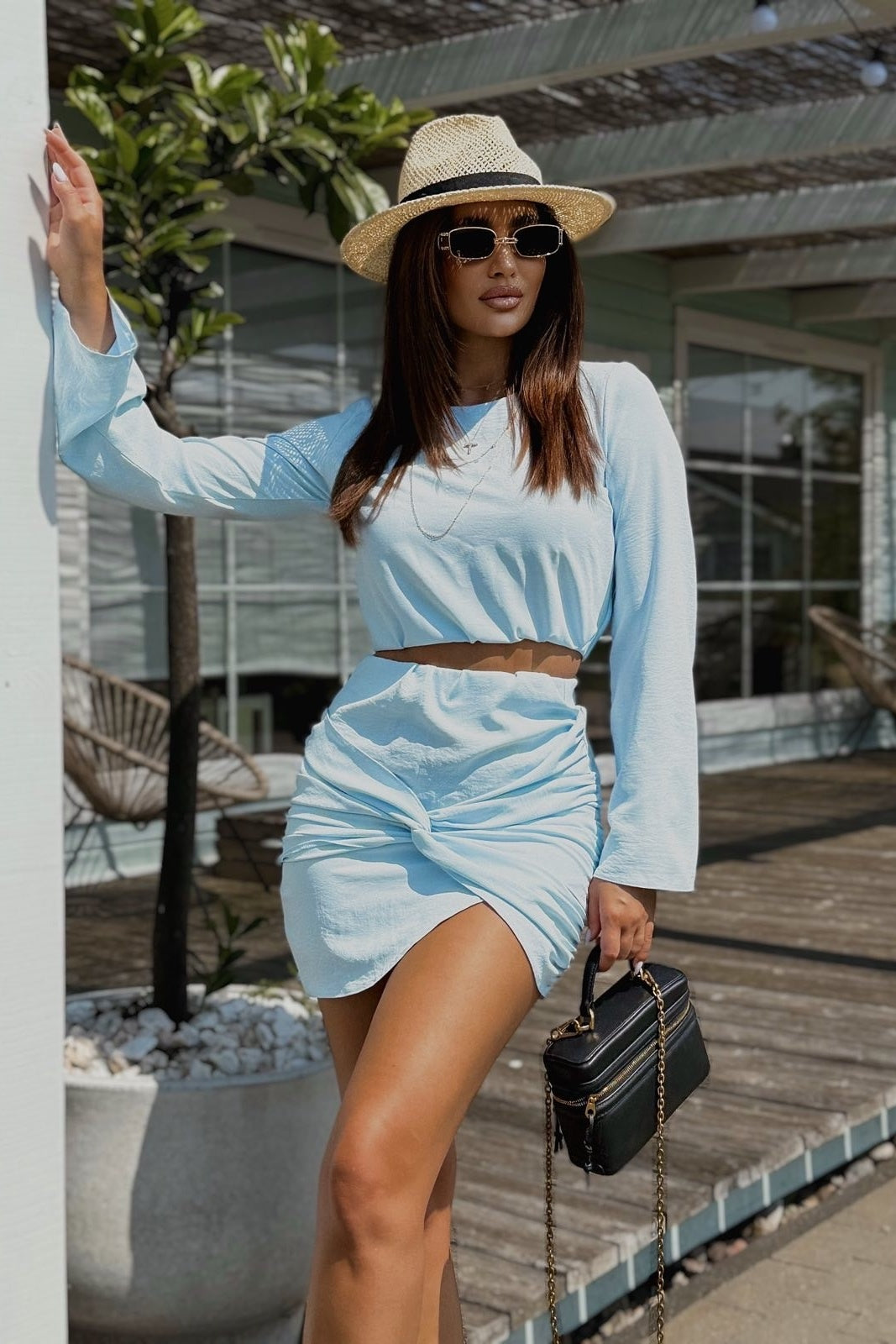 Komplet spódnica+bluzka - Błękitny