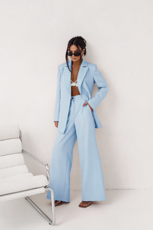 Odkryj elegancję i nowoczesność z garniturem EMMA w kolorze błękitnym. Ten wyjątkowy zestaw został zaprojektowany z myślą o kobietach, które cenią sobie zarówno styl, jak i wygodę. Dzięki połączeniu wysokiej jakości materiałów, 95% wiskozy i 5% elastanu, garnitur zapewnia doskonałą oddychalność oraz elastyczność, co czyni go idealnym wyborem na różnorodne okazje, od formalnych spotkań po wyjścia ze znajomymi.
