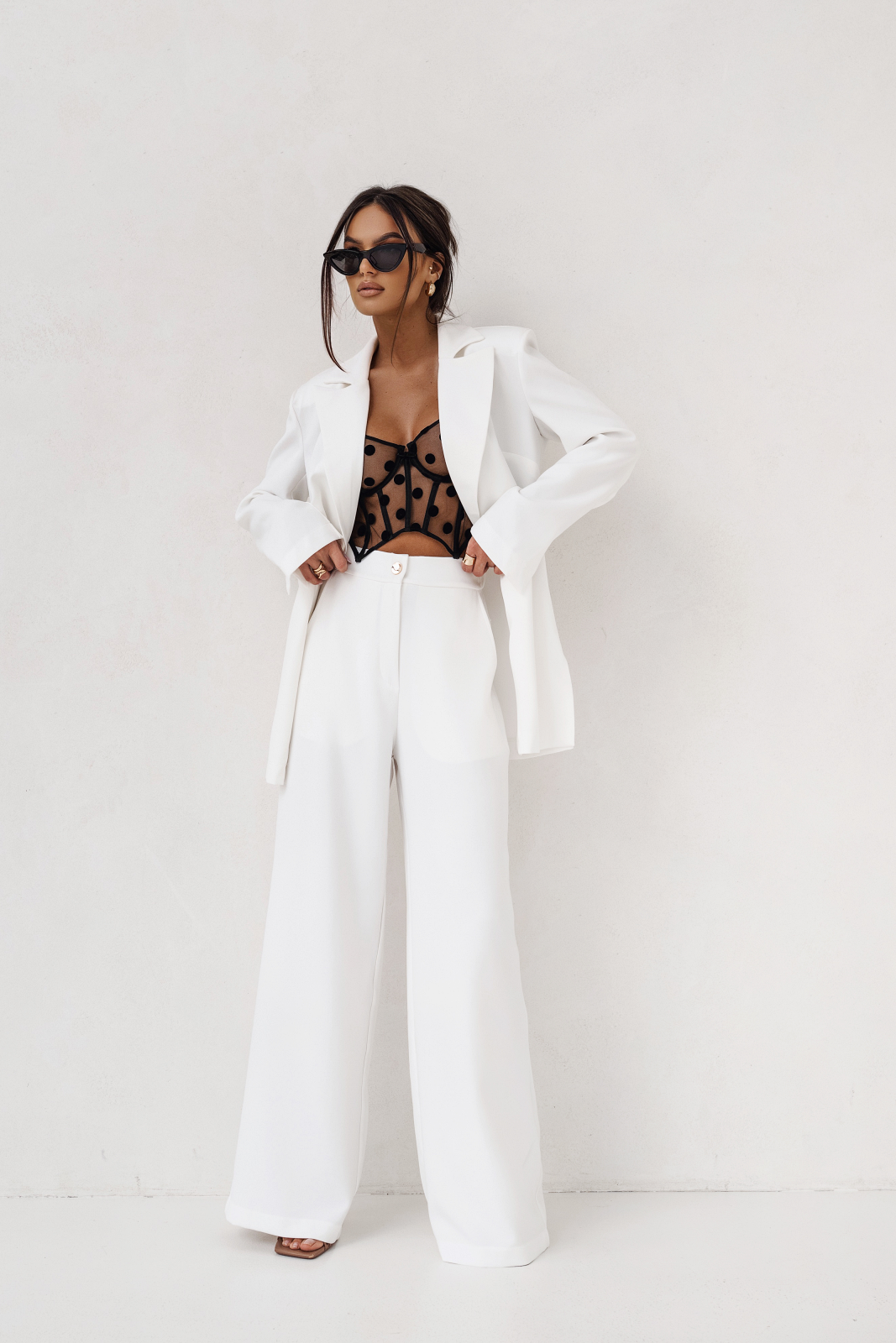 Garnitur EMMA w kolorze ecru to idealny wybór dla kobiet poszukujących elegancji oraz komfortu. Wykonany z wysokiej jakości materiałów, garnitur łączy w sobie nowoczesny styl z klasycznym krojem, co sprawia, że jest doskonałym rozwiązaniem na różne okazje, zarówno do biura, jak i na formalne wydarzenia. Jego ponadczasowy kolor sprawia, że łatwo go zestawić z innymi elementami odzieży.