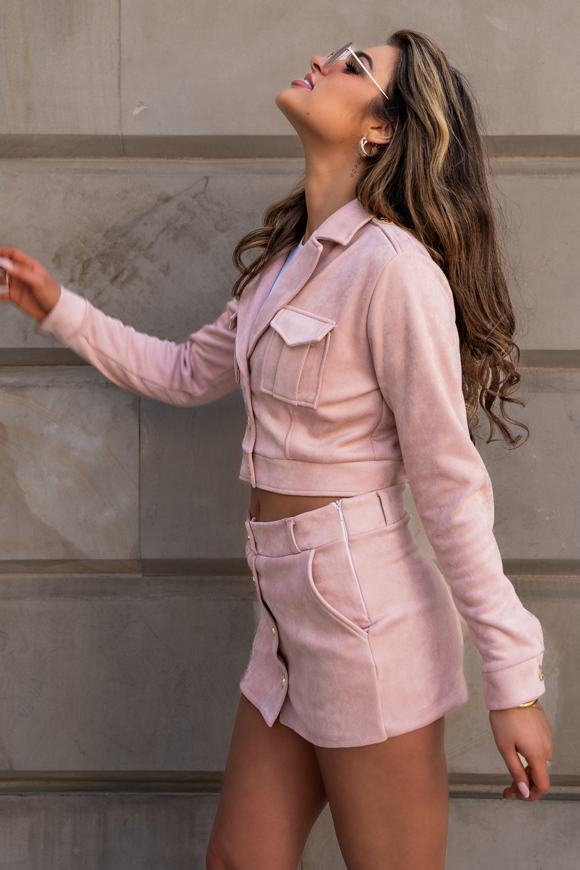 Komplet BLISS Pudrowy róż to elegancka propozycja, która łączy w sobie wygodę i nowoczesny styl. Stworzony z myślą o kobietach, które cenią sobie zarówno modę, jak i komfort noszenia. W skład kompletu wchodzi krótka kurtka oraz spódniczko-spodenki, które doskonale sprawdzą się w różnych stylizacjach, zarówno na co dzień, jak i na szczególne okazje.