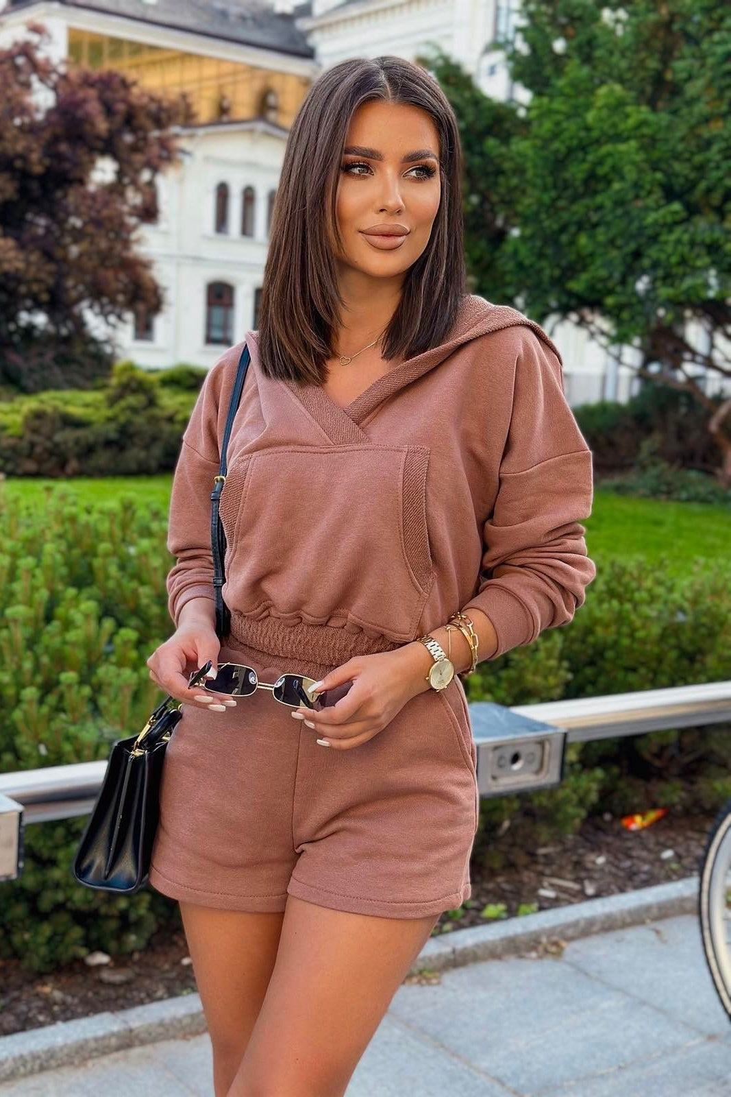 Komplet dresowy z krótkimi spodenkami - Czekoladowy