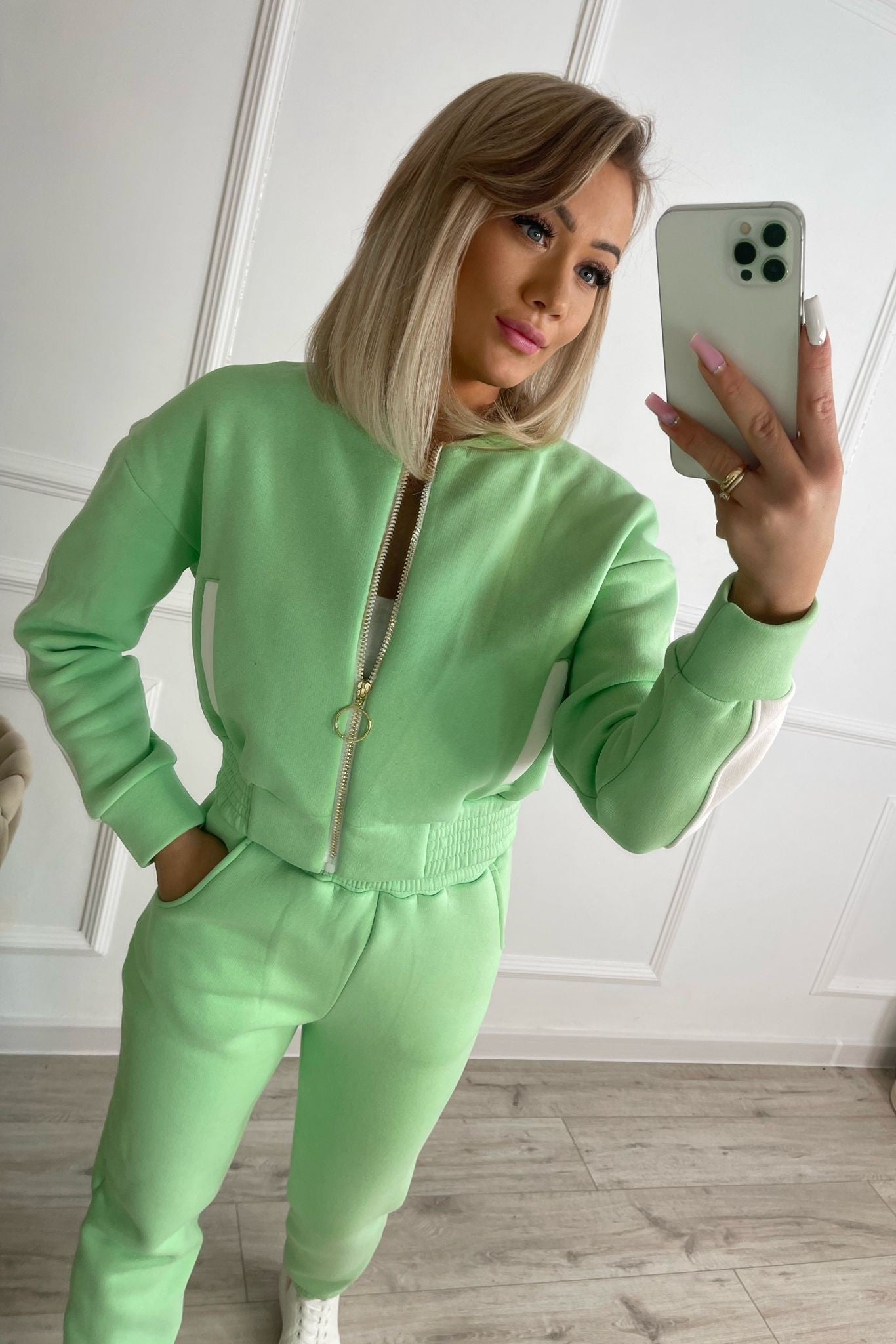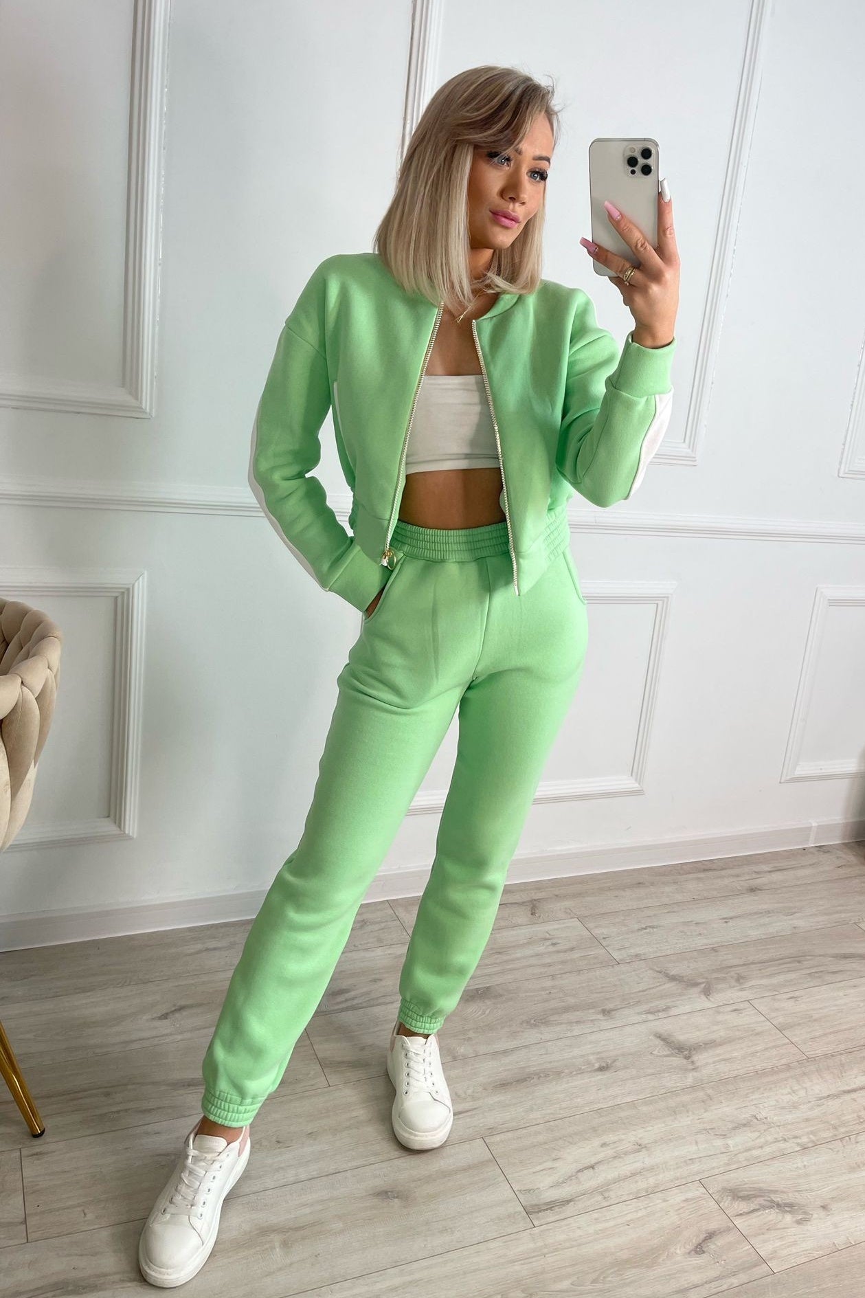 Komplet dwukolorowy z grubej dresówki - Seledynowy