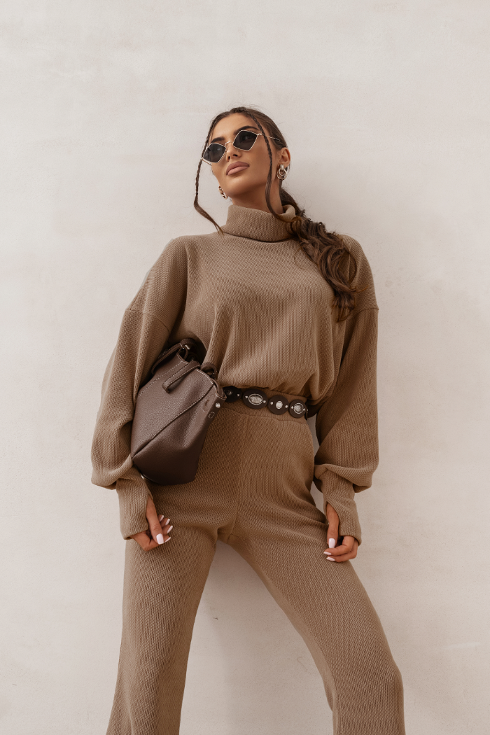 Komplet PRIAH w kolorze ciemnobeżowym to idealne rozwiązanie dla kobiet ceniących sobie zarówno styl, jak i komfort. Ten wyjątkowy zestaw składa się z bluzki oraz spodni, które doskonale komponują się ze sobą, tworząc elegancki i modny outfit na różne okazje. Niezależnie od tego, czy potrzebujesz stroju na spotkanie ze znajomymi, czy na codzienne wyjścia, komplet PRIAH spełni Twoje oczekiwania.