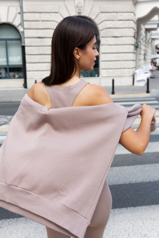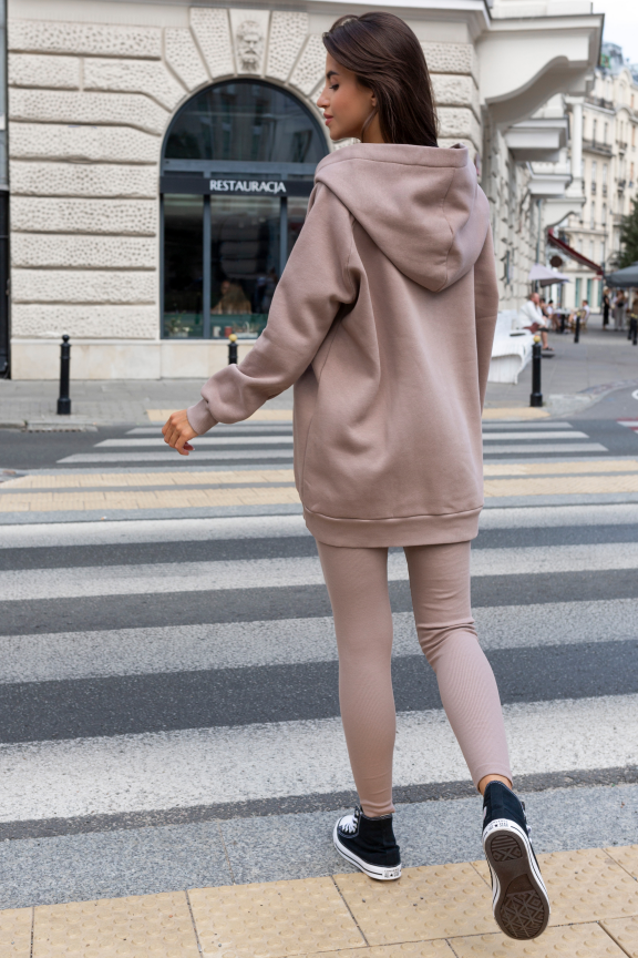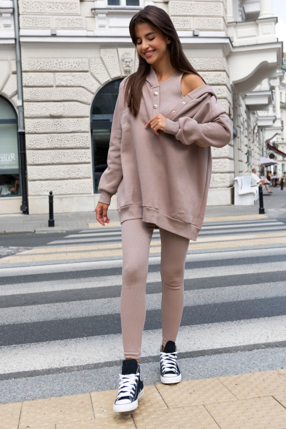 Komplet z legginsami prążkowanymi, bluza złote napy B - Latte