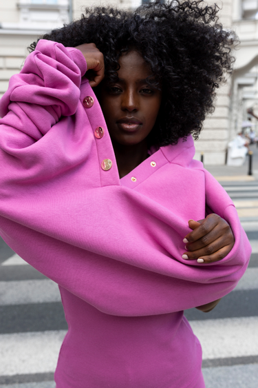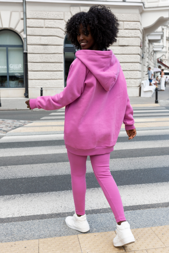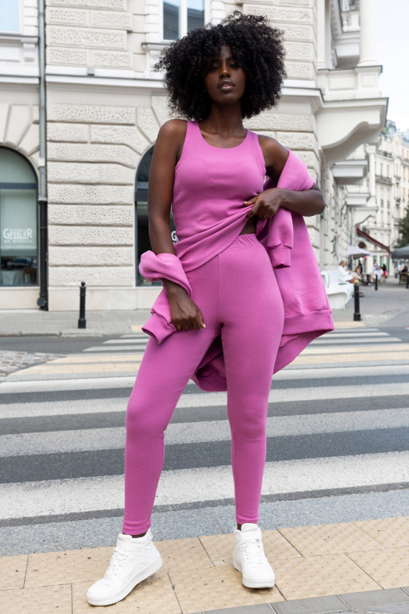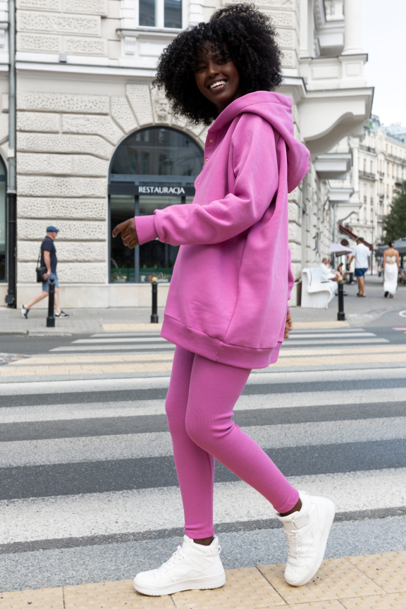 Komplet z legginsami prążkowanymi, bluza złote napy B - Różowy