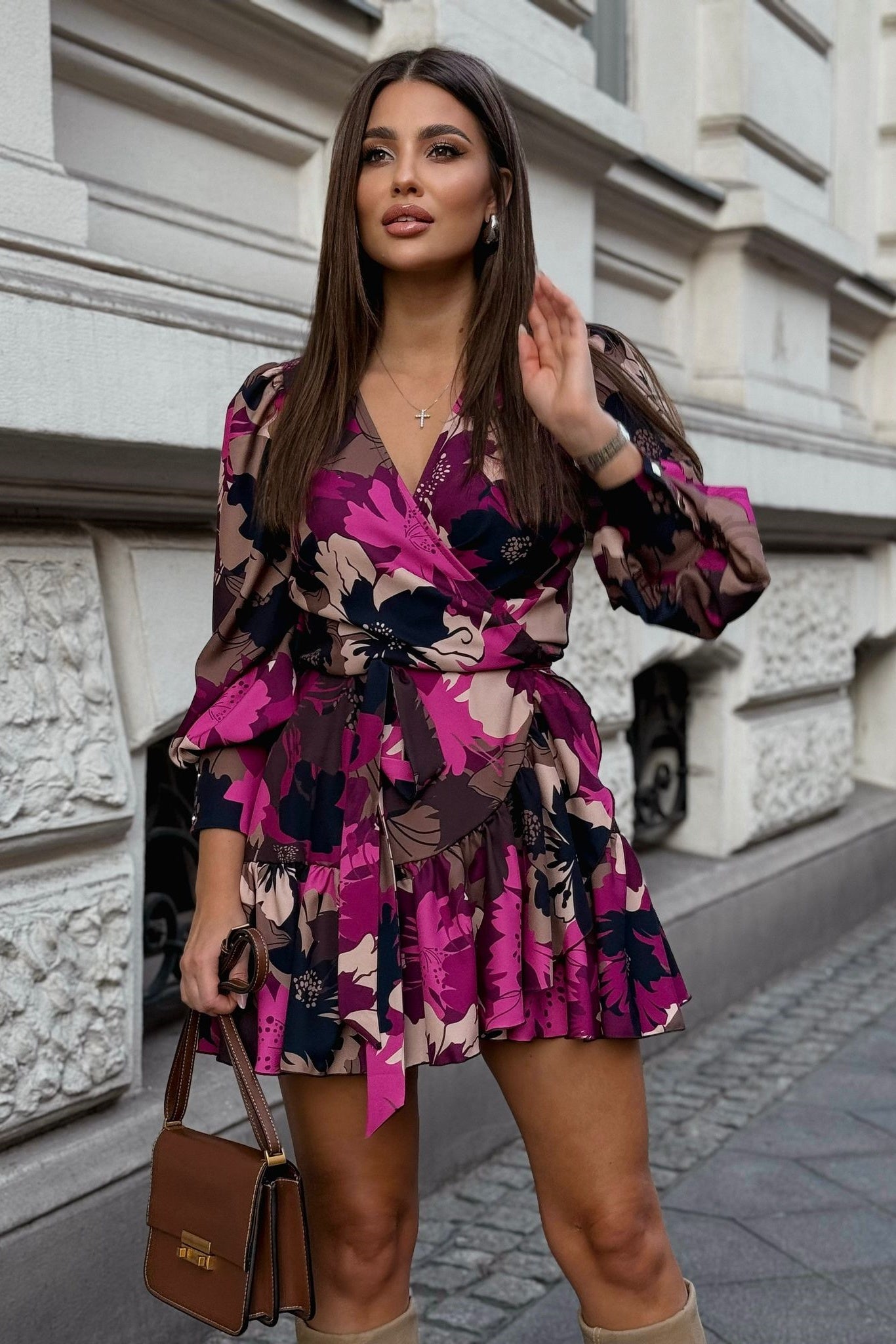 Sukienka "ANNA" krótka - Kwiaty Fuksja