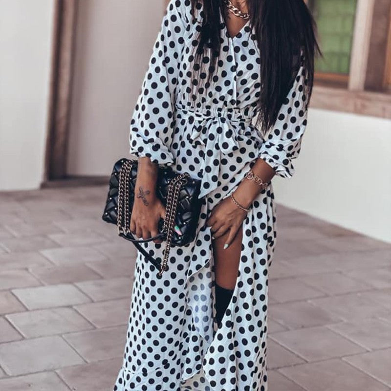 Sukienka Flow w klasyczne czarne grochy to idealny wybór dla osób ceniących sobie styl, wygodę i ponadczasowy design. Wykonana z wysokiej jakości materiałów, zapewnia komfort noszenia przez cały dzień. Lekka i przewiewna tkanina sprawia, że jest doskonałym rozwiązaniem na zarówno letnie dni, jak i wieczorne wyjścia. Dopasowany krój podkreśla sylwetkę, a jednocześnie nie krępuje ruchów. Czarne grochy dodają sukience subtelnego uroku, czyniąc ją łatwą do stylizacji z różnorodnymi akcesoriami. Możesz ją nosić zarówno z eleganckimi szpilkami, jak i casualowymi sneakersami. Sukienka Flow to prostota połączona z elegancją - z pewnością stanie się kluczowym elementem Twojej garderoby. Idealna na różne okazje - od spotkań ze znajomymi po rodzinne uroczystości. Wybierz Sukienkę Flow i ciesz się niezrównanym stylem oraz komfortem na co dzień.