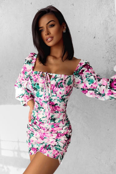 Sukienka hiszpanka - Zieleń róż kwiaty